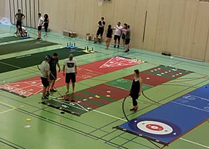 Teppichcurling wird seit Mitte der 70er-Jahre gespielt und ist vor allem in Schweden und Dänemark weit verbreitet. Es ist eine Mischung aus Eiscurling und Eisstockschiessen, wird aber im warmen Zimmer gespielt - oder auch draussen, auf einer geeigneten ebenen Fläche oder einem Platz. Das strategisch-taktische Gesellschaftsspiel ist ideal zur Auflockerung nach einem Firmenseminar und kann bei Ihnen in der Firma, im Seminarhotel oder auch privat auf Ihrem Vorplatz gespielt werden.