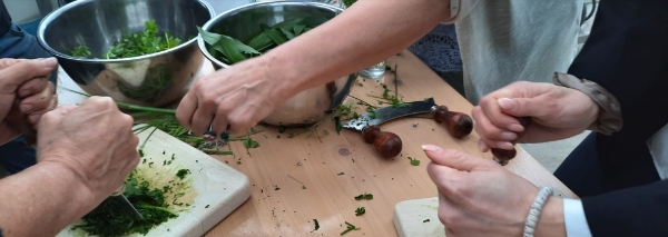 Après la promenade, vous et votre équipe retournerez à la cuisine de l'événement. Là, vous transformez les délices que vous avez récoltés en délicieux produits à base d'herbes. Les produits varient en fonction de la saison, car dans la cuisine aux herbes, il s'agit de travailler les plantes disponibles dans la nature. Plongez dans les senteurs et les saveurs de la cuisine aux herbes. La dégustation est bien sûr autorisée.