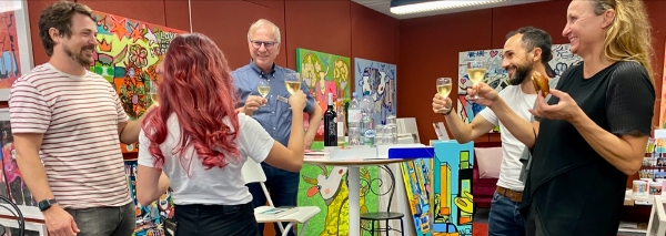 Vous cherchez quelque chose de spécial pour votre enterrement de vie de jeune fille ? Quelque chose de personnel, de créatif et qui restera à coup sûr inoubliable ? Lors de cet événement créatif dans un atelier d'artistes à Berthoud, vous et votre groupe créerez ensemble une grande toile comme cadeau pour la mariée.