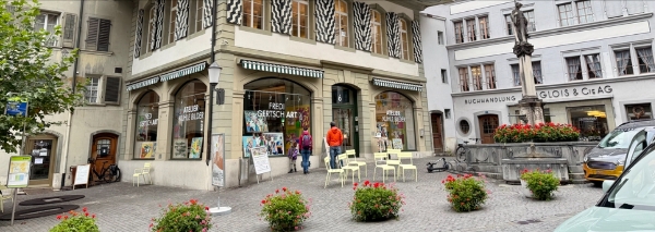 L'atelier coloré situé dans la vieille ville de Burgdorf invite à s'attarder. Les vaches colorées sont un objet très apprécié dans les tableaux de l'artiste. Elles confèrent à l'atelier une atmosphère particulière et joyeuse - exactement l'endroit idéal pour devenir soi-même créatif.